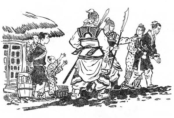 У Ду-ге з рани текла кров, він сів на землю, нездатний зробити бодай незначного руху. Але тут він згадав про ненависного князя, згадав про палац до неба, згадав про людей, що зносять муки, згадав про тата й маму, брата і сестричку. Взявся за коромисло і, прикусивши губи, пошкутильгав уперед, до гори Хуаннюшань, тягнучи за собою корзину.