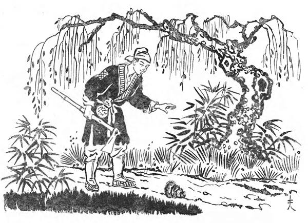 Заспівали півні, почало сіріти небо. Встав юнак і тільки-но хотів промити рис, щоб зварити на сніданок, аж глядь — під казаном жар червоніє і сніданок уже готовий. Ще більше здивувався він і навіть боязко йому стало.
