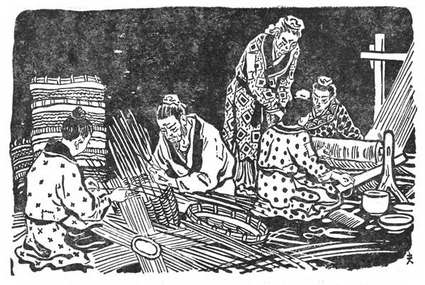 Батько з сином плели бамбукові кошики, а мати з дочками ткали полотно та вишивали. Усі вони були дуже роботящі, працювали вдень і вночі. Ламп тоді ще не було, і люди вечорами палили хмиз та солому, щоб посвітити собі.